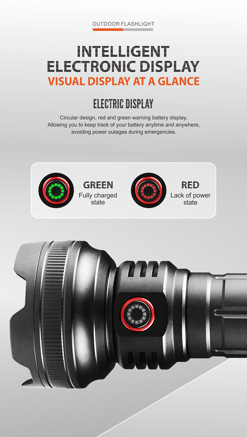 - Lighting Mode: 5 Modes , Strong — Medium– Weak — Flashing –SOS Accessories: Data Cable, Tail Rope, Battery Case